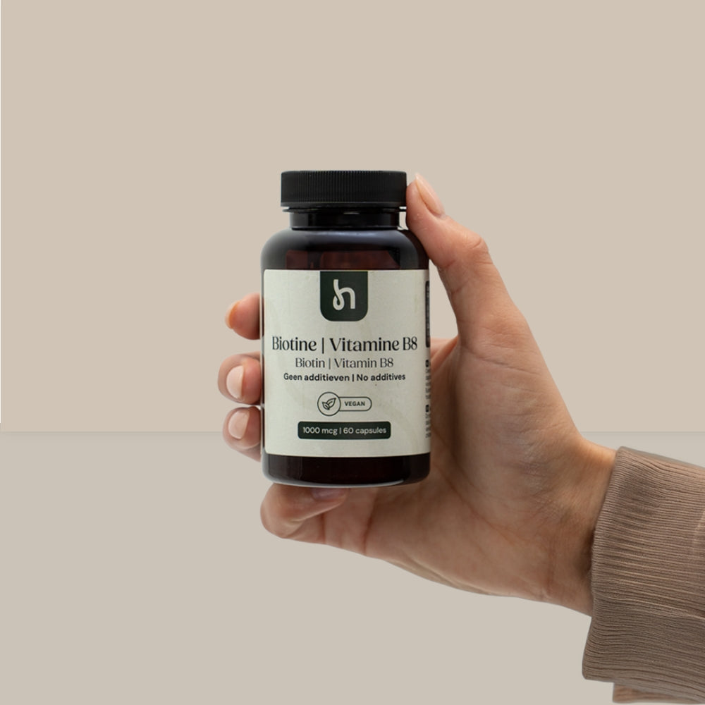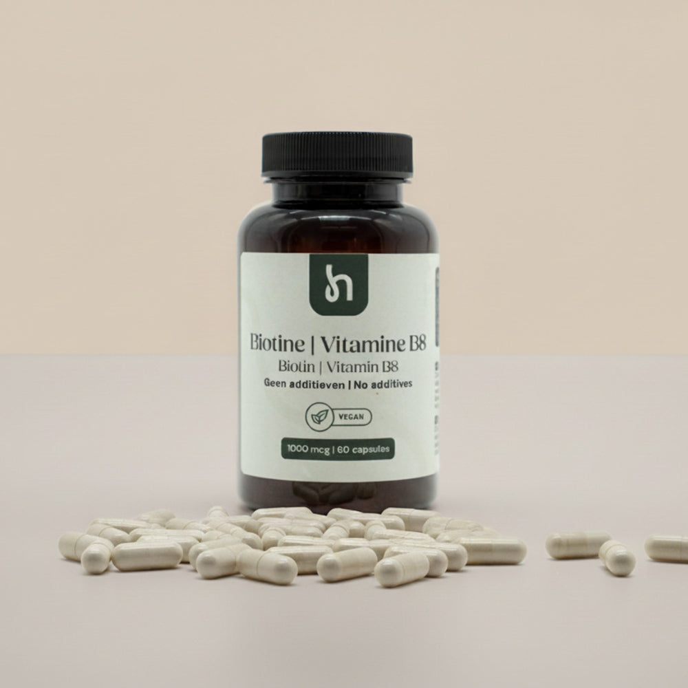 El suplemento de Biotina (Vitamina B7) es un suplemento de biotina en altas dosis que ayuda a mantener el cabello y la piel en condiciones normales. La biotina suele ser el ingrediente principal de los comprimidos avanzados para el crecimiento del cabello y favorece la producción de queratina. El suplemento es adecuado tanto para hombres como para mujeres. Cada dosis diaria contiene 1000 mcg de biotina; el frasco contiene 60 cápsulas.