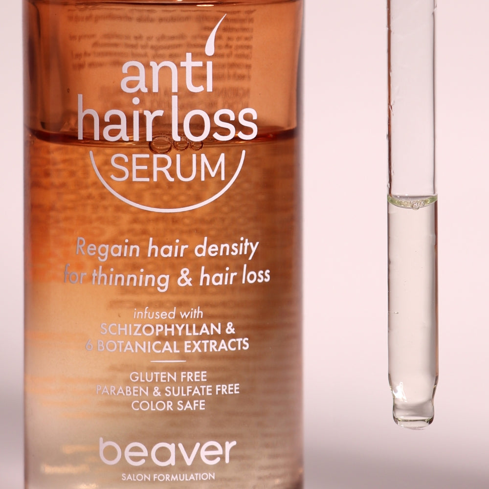 Beaver Anti Hair Loss Serum inneholder en blanding av potente botaniske ekstrakter, inkludert Biota orientalis (thuja), Polygonum multiflorum (fo-ti), ingefærrot, Panax ginseng, Anemarrhena asphodeloides og Schizophyllan (beta-glukan).
