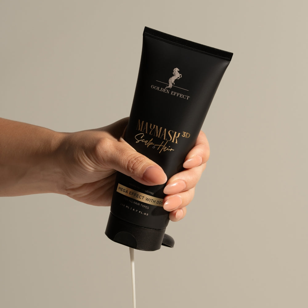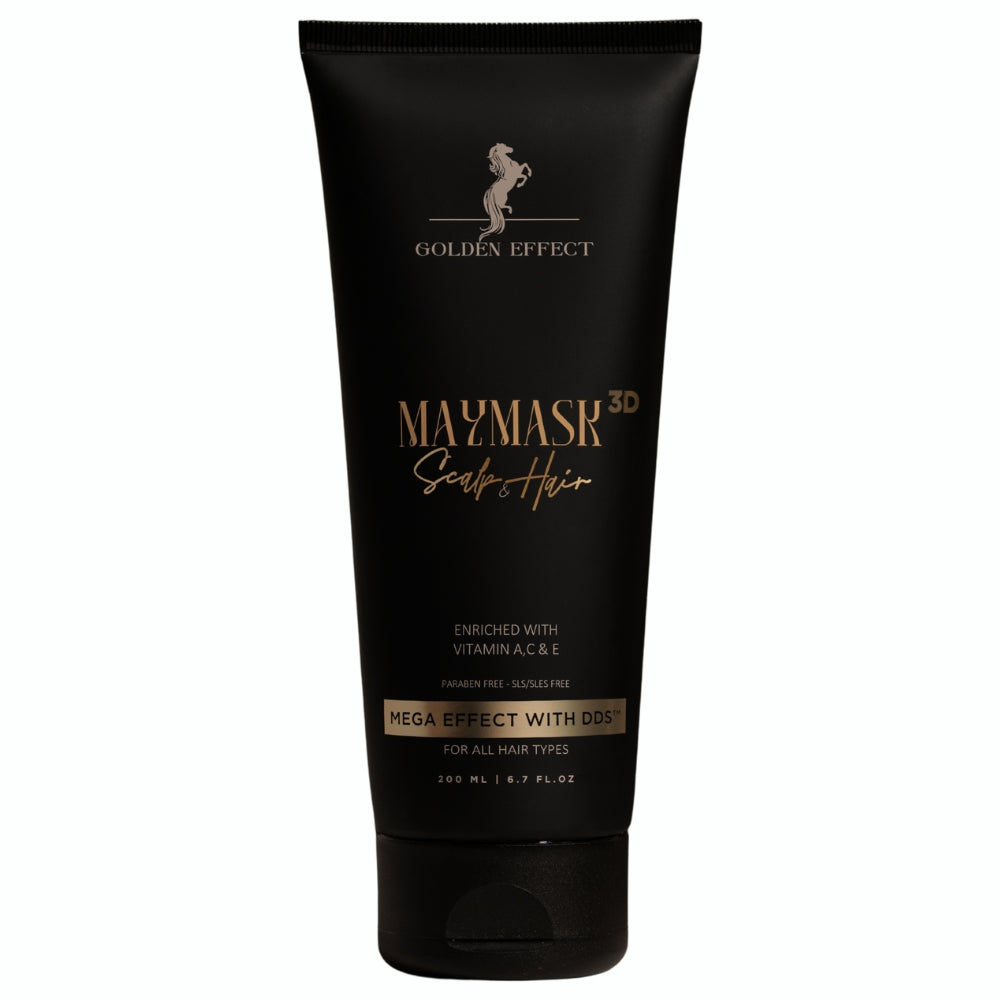 Maymask 3D fra Golden Effect er en intensiv hårmaske som gir næring, fuktighet og reparerer skadet, tørt og livløst hår på dypet. Denne avanserte masken virker på tre nivåer - i hodebunnen, på hårets overflate og i hårets lengder - og er utviklet for å gjøre håret sterkere, mer elastisk og synlig sunnere.