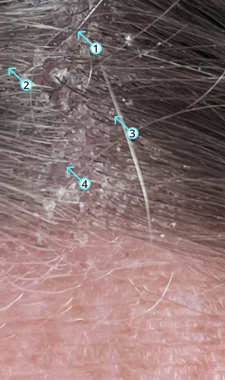 Age 59 years, female. Dandrene works well, but you should use it a few weeks before you see results. No more flakes and no more itching. Nice and loose falling shiny hair.
