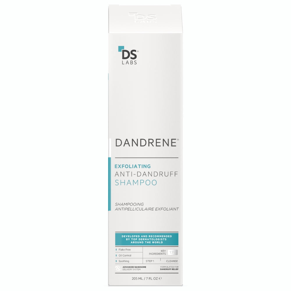 DS Labs Dandrene Exfoliating Anti-Dandruff Shampoo to silny szampon przeciwłupieżowy, który natychmiast chłodzi i oczyszcza skórę głowy oraz włosy. Już od pierwszego mycia pomaga zmniejszyć swędzenie, podrażnienie, zaczerwienienie i łuszczenie się, a jego działanie utrzymuje się nawet po spłukaniu. Dzięki zaawansowanej formule skóra głowy szybciej się uspokoi, a włosy będą wyglądać na czystsze, zdrowsze i lepiej zadbane.