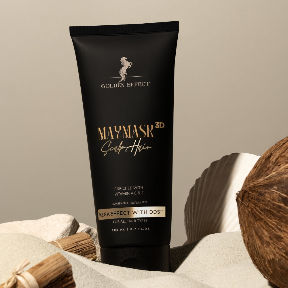 - Maymask 3D ger vård på tre nivåer: hårbotten, hårets yta och hårets längder